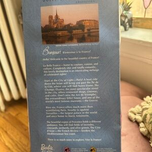 Barbie Dolls of the World France edition. 50th Anniversary collection. Never been out of the box, though it had been sitting in my dad’s basement for years, so the box isn’t perfect, but the doll is!