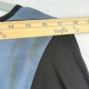 Artistic design with blue and yellow accents. Comfortable long sleeves.
