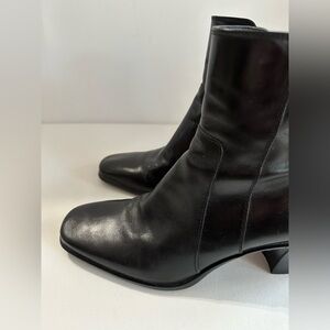 Antonio Melani Heels Black Leather Booties 3” Heel Y2K Chunky Square Toe