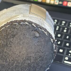 Soles have wear (small hole - pictured) but still retain some tread.