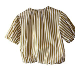 AYR Striped Blouse Puff Sleeve Gold White Women's S Top Bubble Hem