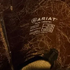 Elegant Ariat cowboy boots in rich brown leather. Features detailed stitching and classic design. 9” height size 10