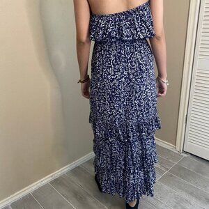 Yidarton Strapless Maxi Dress –Navy & White Floral Size S