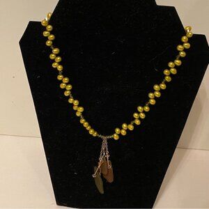 NECKLACE GREEN FRESHWATER PEARLS CRYSTALS BEACH GLASS 925 STERLING SILVER 16”