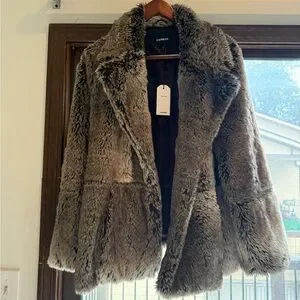 Luxurious teddy jacket by Express. Plush faux fur in a deep brown shade. Perfect for warmth and style.