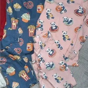 Adorable kids pajamas featuring playful prints on blue and pink backgrounds. Perfect for a cozy night's sleep.all in good condition size 2t
