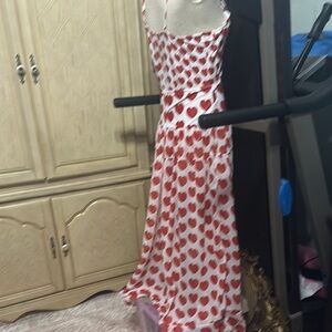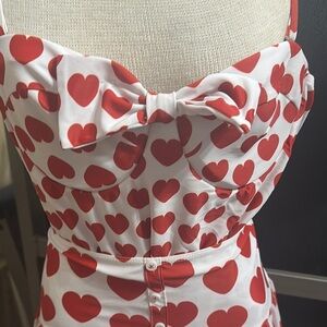 And fun heart design , the cover up can be just slipped over and you’re ready to go in anywhere. Beachside cover-up and suit are made of the same material very thin and comfortable cool cover up has opening down the front. About thigh high, but the skirt is so full. It doesn’t show too much just enough. If needed, measurements will be added.