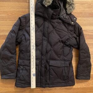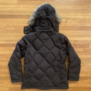 Lands' End Jacket Womens XS Petite Brown Quilted Down Faux Fur Hood Parka Zip