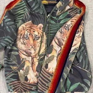 Aviator Nation Mens S Tiger Print zip Hoodie with velvet stripes