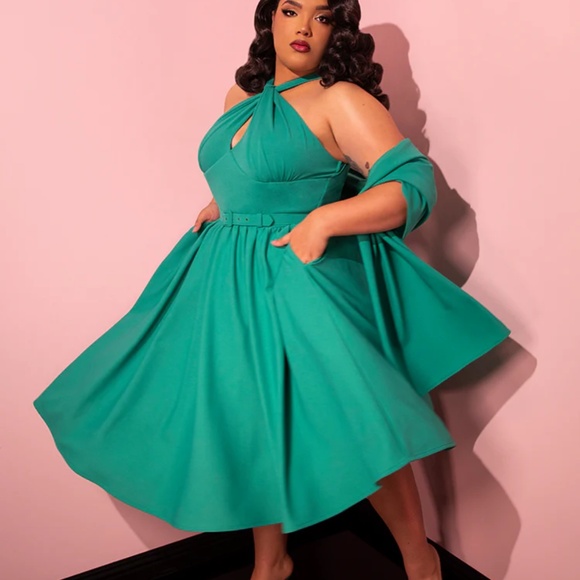 NWT Never worn Golden Era Swing Dress and Scarf in Teal-Vixen by Micheline Pitt