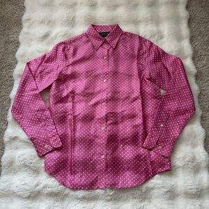 Jones New York Vintage Silk Pink and White Polka Dot Button Down Blouse.