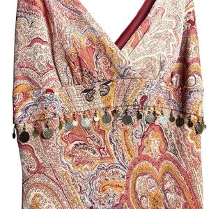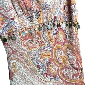 Jonathan Martin Colorful Paisley Ruffled Tiered Sundress With Coin Belt Tie 10P