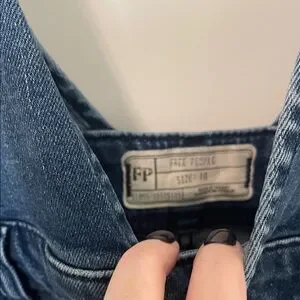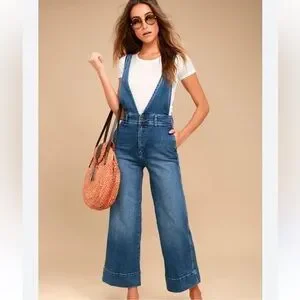 Features - Thick denim, cropped, wide trouser leg, wide hem, pockets, high rise