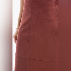 MAX STUDIO Faux Suede Leather Burgundy A-Line Midi Skirt