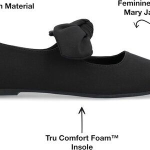 The Seralinn flats by Journee Collection add a touch of sass and class to any look. With their beautiful fabric uppers bow detail and tiny block heel you're sure to turn to these when you want something classic. A 4 mm � Insole makes them super comfy and a mary jane bow strap adds a vintage look.