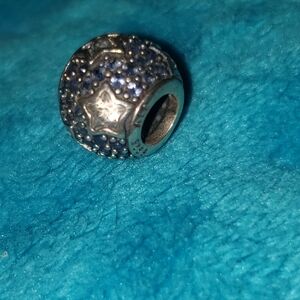 Add a touch of elegance to your jewelry collection with this twinkling, hand-finished sterling silver charm by PANDORA, featuring star-shaped cubic zirconia set on a midnight blue crystal pavé background. made of sterling silver. Deadstock no longer being made. Perfect for any occasion. or would be a great gift.