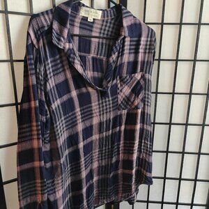 Cloth and Stone Purple Blue Pink Plaid Long Sleeve Casual Blouse - XL