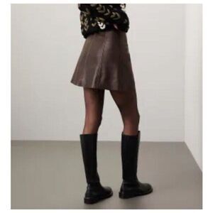 VEDA Leather Skirt Women 10 Brown Mini Distressed Side Zip Lined