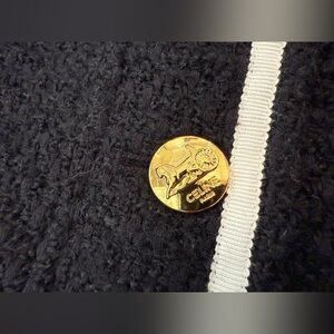 • Buttons: Striking gold-plated embossed “Celine Paris” buttons featuring the iconic horse & carriage emblem