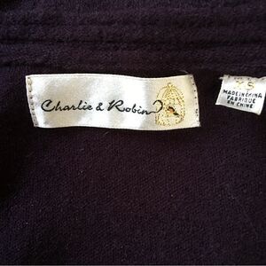 In great previously owned condition. Charlie & Robin for Anthropologie ruffle cardigan in black. Two eye hook clasp to close cardigan in the front. Ruffles line the front of the cardigan. Cute pockets! Black, long sleeves, tailored fit with fabulous ruffles that wrap around the front and hems. A6