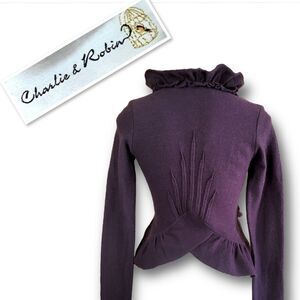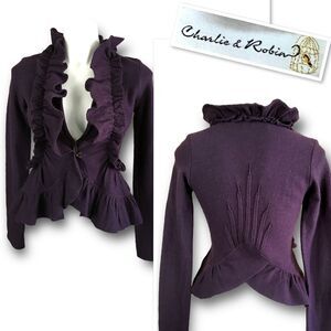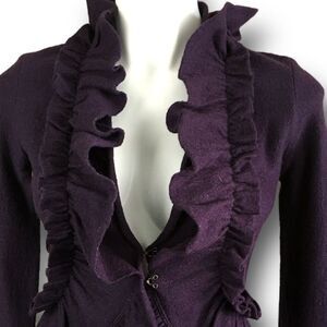 Anthropologie Charlie & Robin Ruffle Boiled Wool Cardigan In Purple Size XS