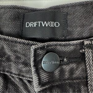 Great condition Driftwood Parker Barrel Jeans. High rise. Faded black. Button fly. Embroidered floral print with bees and a butterfly. Raw hem. Please see all pictures!