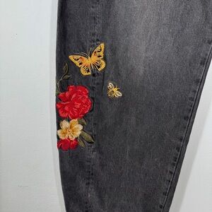 Driftwood Parker Barrel Jeans Faded Black Embroidered Floral Bee Butterfly 24
