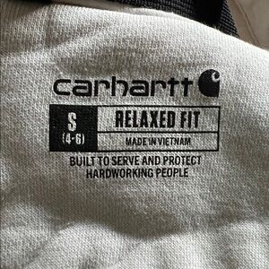 good used condition. Minimal wear.. tiny spot (see last pic).Cozy Carhartt hoodie in light beige. Features a front pocket and drawstring hood. Unisex 4-6 small adult