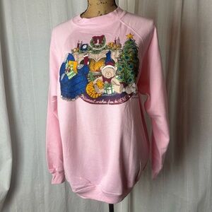 Vintage Air Waves Pink Sweatshirt Christmas Tree Bear Graphic Unisex XL