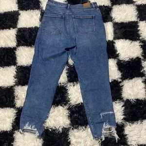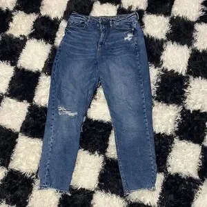 Stylish blue jeans with a straight leg cut. Features subtle distressing for a trendy look.