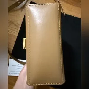 A few light minor scratches on the purse; there are some scratches on hardware as pictured. Otherwise, no rips or stains, it's clean. Authentic! Colour is deep toffee, it’s the exact one pictured in the second photo (same colour). The photos I took are coming up a bit lighter but it’s darker like the photo from website.