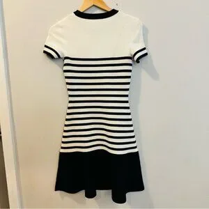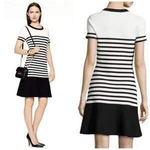 Kate Spade Drop Waist Scuba Fit & Flare Dress Black Ivory Stripe Size XXS