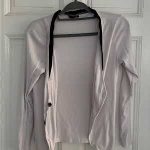 LMK sz XL (looks more like L) white sweater black trim button up