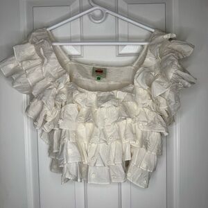 Farm Rio 3D Flower Ruffled White Top size Large Layered Top Shirt