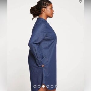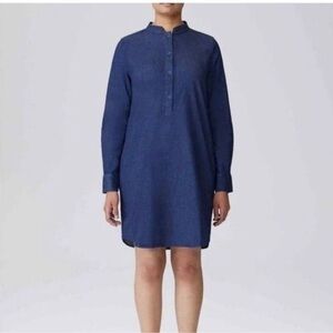 Chic denim indigo tunic/ dress by Universal Standard. Ideal for everyday style. Longsleeve. Henley style. Great with leggings or tights with boots for fall
