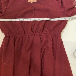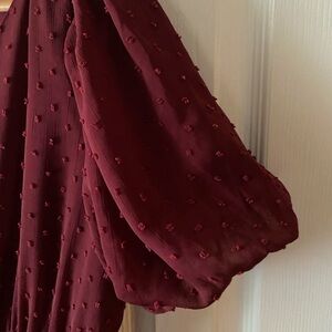JESSAKAE Highbury Burgundy Swiss Dot Chiffon V-Neck Puff Sleeve Midi Dress XL