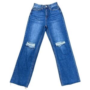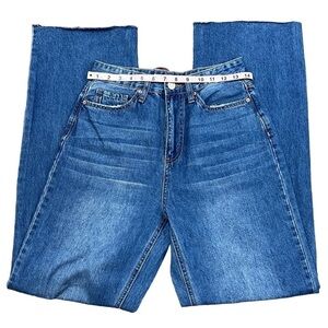 YMI DREAM Woman’s Wide Leg Medium Wash Distressed Denim Jeans w Raw Hem Size 7