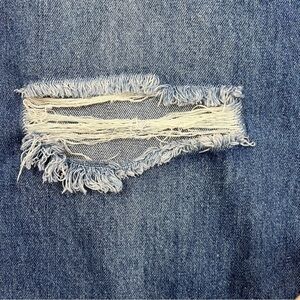 Great preowned condition. One of the knee holes ripped a little bit. Please see picture. Should be an easy fix. The hem is raw and may have been cut off.