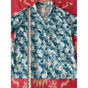 BLAIR blue & white floral vintage long sleeve blouse sz 14