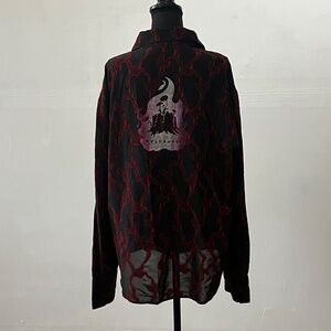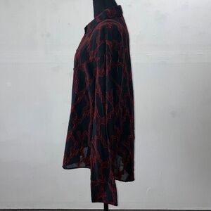 Stylish Versace shirt with striking red pattern on black. Perfect for casual wear.