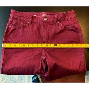 I purchased these St. John's Bay pants and realized I already have a pair close to this color. They are in perfect condition. It is a dark raspberry/burgundy, with 5 pockets. 30.25" inseam, size 6, straight leg, mid-rise, with some spandex for stretch.