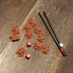banana has some damage, tear in bottom corner, but all pieces are intact
