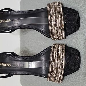 EXPRESS Women's Black Rhinestone Strappy 4 inch Open Toe Heels - Size 7.5