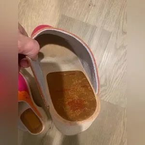 NWOB Hanna Andersson Pink+ orange leather clogs lace cut detail size 7/37