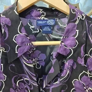 Venezia Jeans Womens Purple Floral Silk Blouse 14/16 Bell Sleeve Whimsigoth Boho