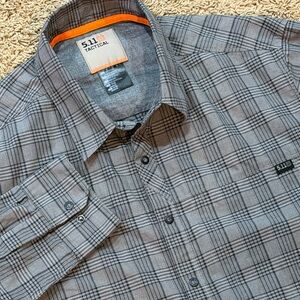 511 Tactical Snap Shirt Mens Medium Gray Plaid Long Sleeve Cotton Blend