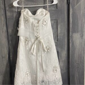 Maggie Sottero Strapless White Dress with Silver Accents
