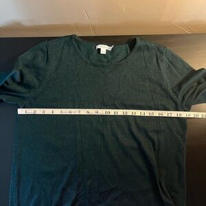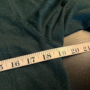 Chico’s Lurex Pleat Sleeve Pullover Sweater Emerald Green Shimmery Size M