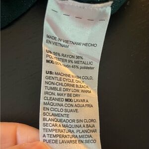 • 54% rayon, 37% polyester, 9% metallic.