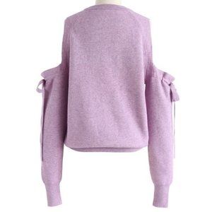 Barbiecore Pink Self Tie Bow Sleeve Cold Shoulder Sweater Size Small